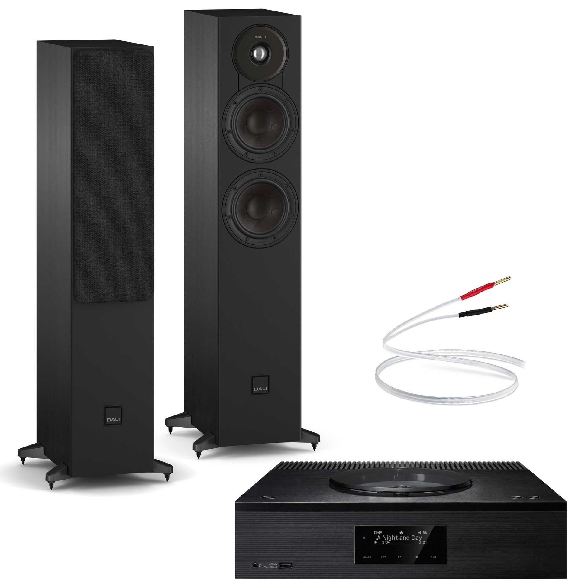 This package includes the Technics SA-C600, a pair of Dali SONIK 5 floorstanding speakers and a free 3m pair of QED XT25 pre-terminated speaker cables.